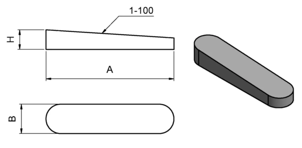 A Chaveta Paralela sem cabeça, conforme DIN 6886, é um elemento mecânico utilizado para o acoplamento seguro entre eixo e cubo, garantindo transmissão de torque eficiente e evitando o deslizamento das peças.