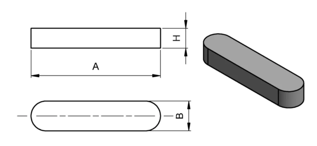 Chaveta Paralela com duas extremidades retas conforme norma DIN 6880 e DIN 6885 B, é utilizada para fixação de elementos rotativos, como polias, engrenagens e acoplamentos, garantindo transmissão de torque e posicionamento preciso entre eixo e cubo. Seu formato retangular ou quadrado e tolerâncias dimensionais padronizadas asseguram perfeita adaptação a alojamentos usinados conforme a norma.